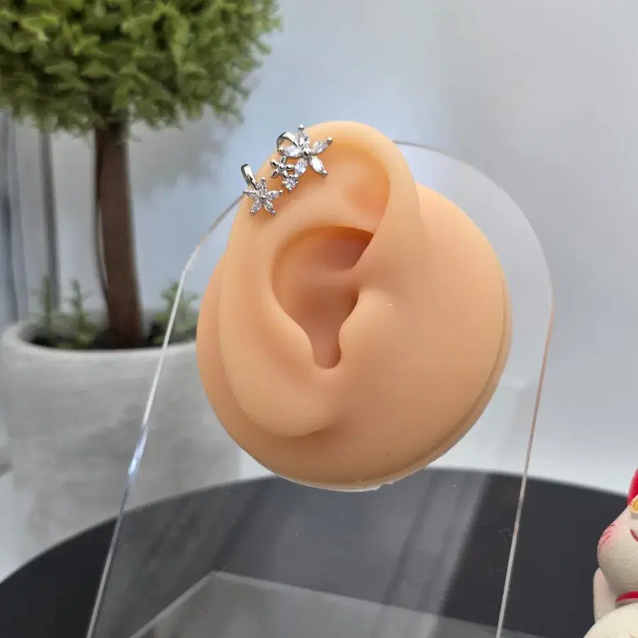 실버 컬러 플라워 이어커프 합금 비쥬 2개 세트 화려함