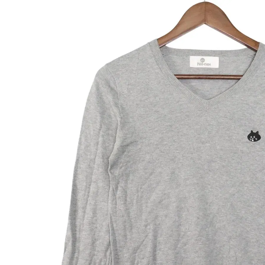 [새상품급] 네넷 냐아 자수 V넥 니트 코튼 100% 그레이 사이즈 2