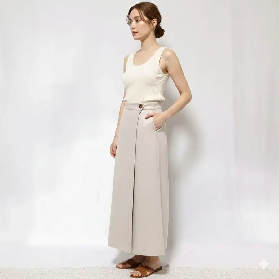 새상품급 갤러리 바이 코튼 100 랩 스타일 롱 스커트 베이지 36