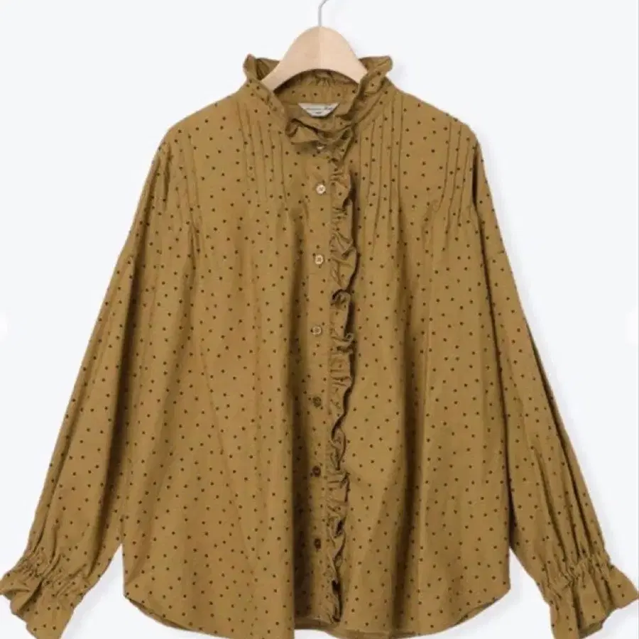 옷깃과 플라켓에 프릴을 더해 사랑스러움을 가득 담아 완성한 블라우스입니다. 작은 도트 무늬로 성숙한 디자인인 점도 매력적인 포인트입니다. 차분한 색상으로 품격 있게 스타일링할 수 있으며, 캐주얼부터 깔끔한 코디까지 다양한 스타일링 어레인지도 즐기실 수 있습니다.