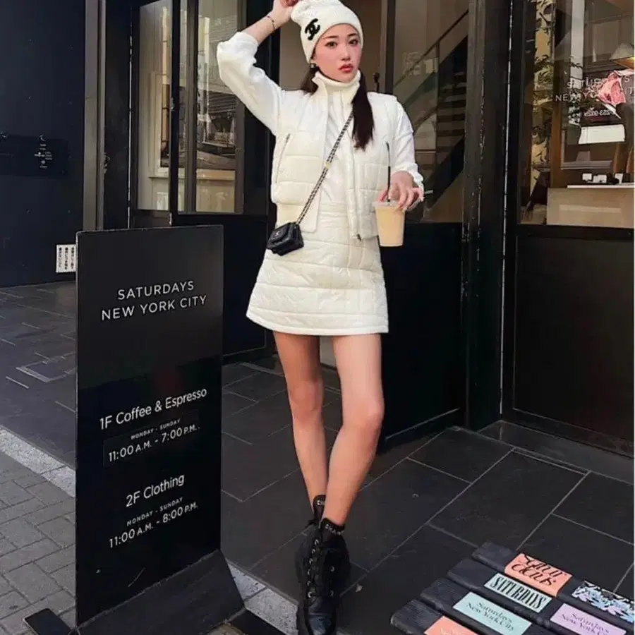 셰리에 sheller 스퀘어 퀼팅 베스트 자켓 스커트