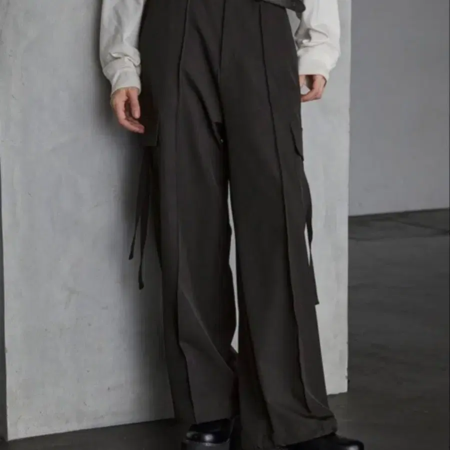 SERACE 루즈 드레프/데님 와이드 카고 팬츠 블랙 사이즈:L