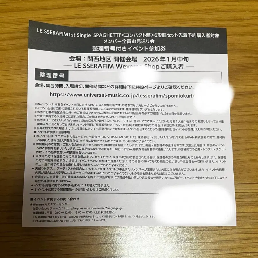 르세라핌 SPAGHETTI 배웅회 참가권 간사이