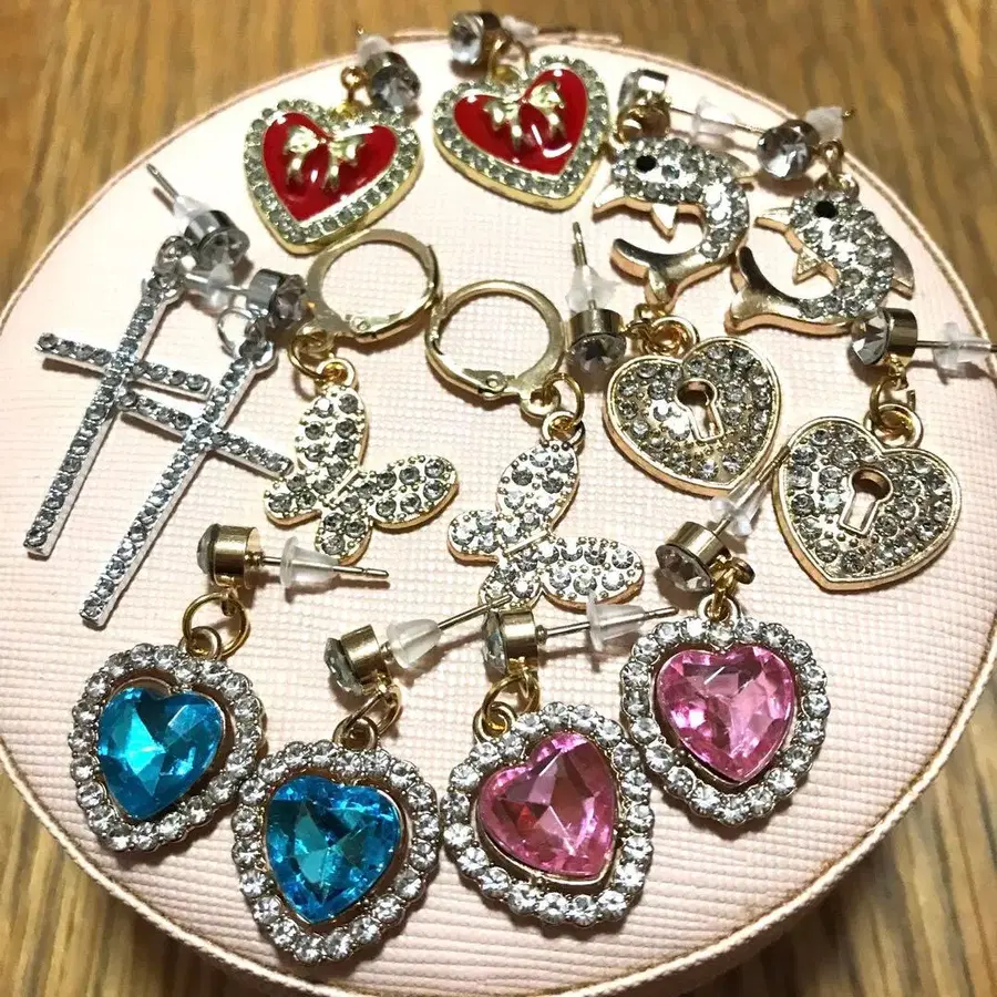 하트 모양과 나비 귀걸이 세트
