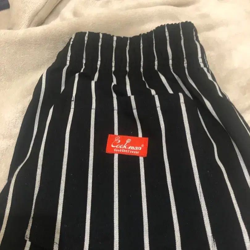쿡맨 셰프 팬츠 스트라이프 와이드 팬츠 블랙