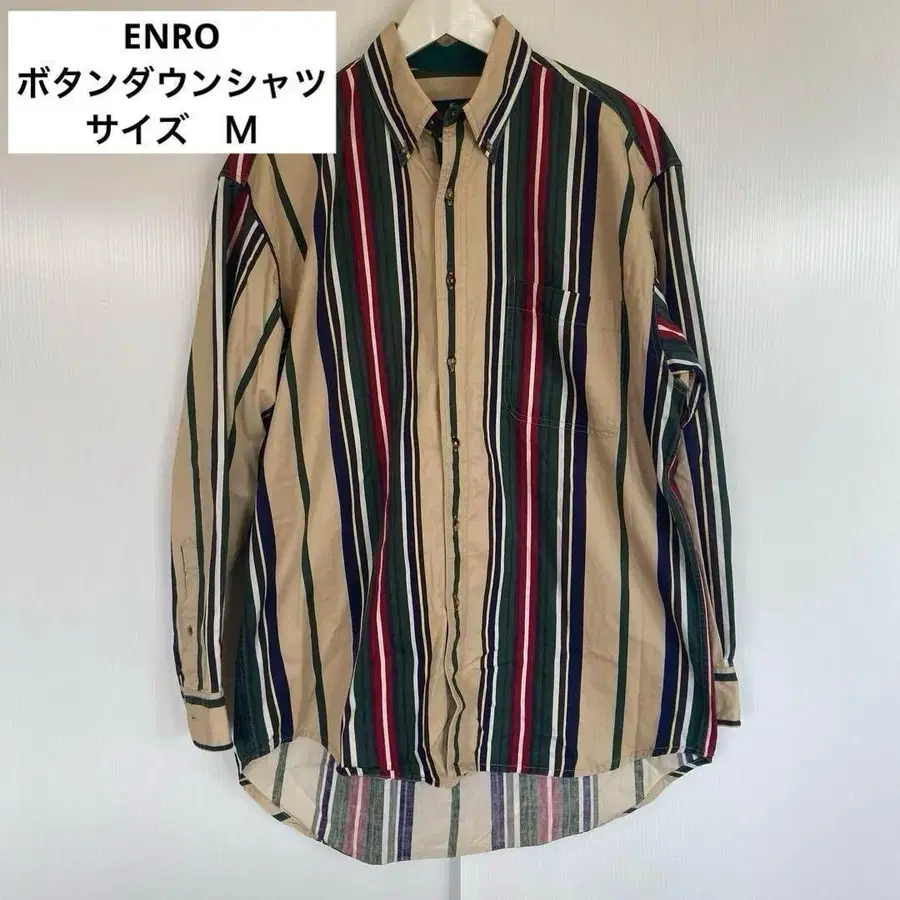 ENRO의 버튼 다운 긴팔 셔츠. 멀티 컬러 (베이지, 그린, 레드, 블랙, 네이비) 스트라이프 디자인. 빈티지 느낌의 상품입니다.