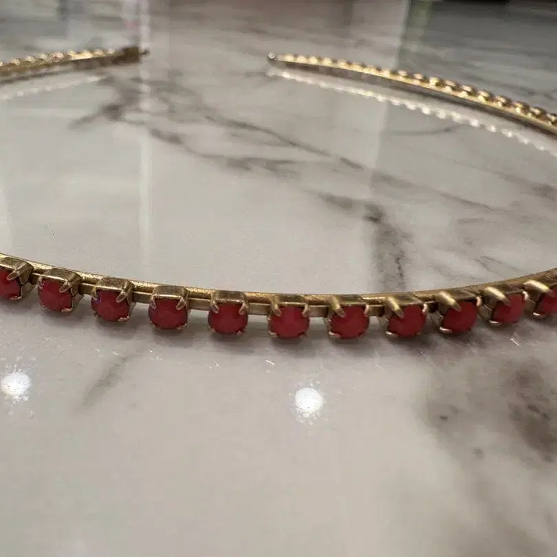 빨간색 스톤이 달린 헤어밴드