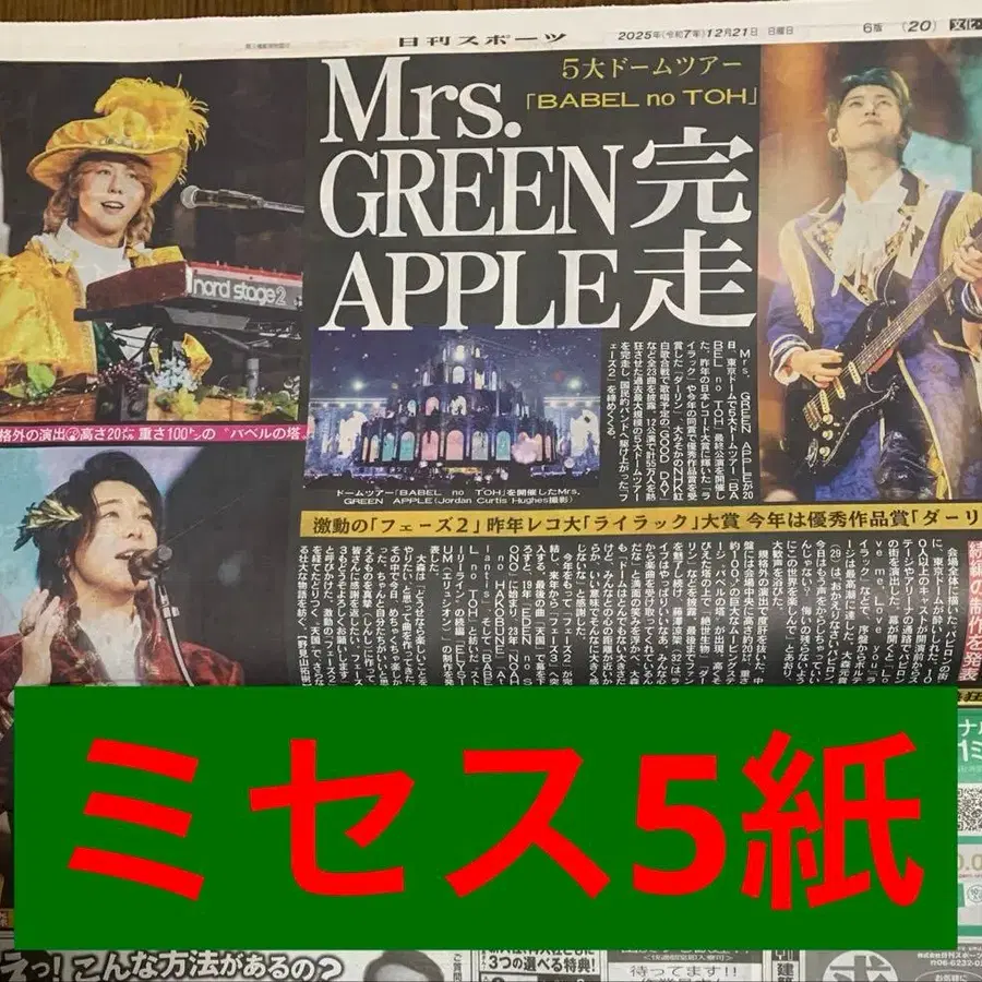 미세스 MGA 돔 투어 완주 스포츠 신문 5개 신문 전부 12월 21일