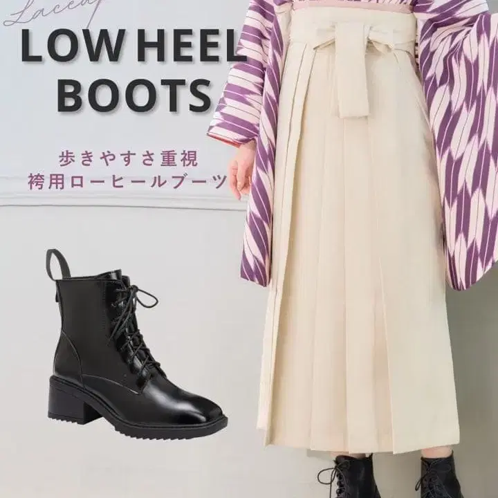 캐주얼하게도 사용할 수 있는, 하카마용 레이스업 로우힐 부츠입니다. 플랫한 로우힐이라, 걷기 편한 것을 중요하게 생각하는 분께 추천합니다. 오래 걸어도 피로하기 어려운 착용감. 평소 캐주얼 코디에도 사용할 수 있는 디자인입니다. 지퍼가 달려 있어, 탈착이 간편합니다. 힐: 약 5cm 35 사이즈 22.0-22.5 36 사이즈 22.5-23.0 37 사이즈 23.0-23.5 38 사이즈 23.5-24.0 39 사이즈 24.0-24.5 40 사이즈 24.5-25.0 추운 날이나 비 오는 날에도 안심하고 신을 수 있는 로우힐 부츠. - 모델: 로우힐 부츠 - 사이즈: 22~25cm - 포인트 1: 추운 날에도 안심하고 따뜻하게 - 포인트 2: 눈, 비가 와도 안심 - 포인트 3: 소리가 조용하고 걷기 편함 - 포인트 4: 피로하기 어려운 로우힐 방문해 주셔서 감사합니다.