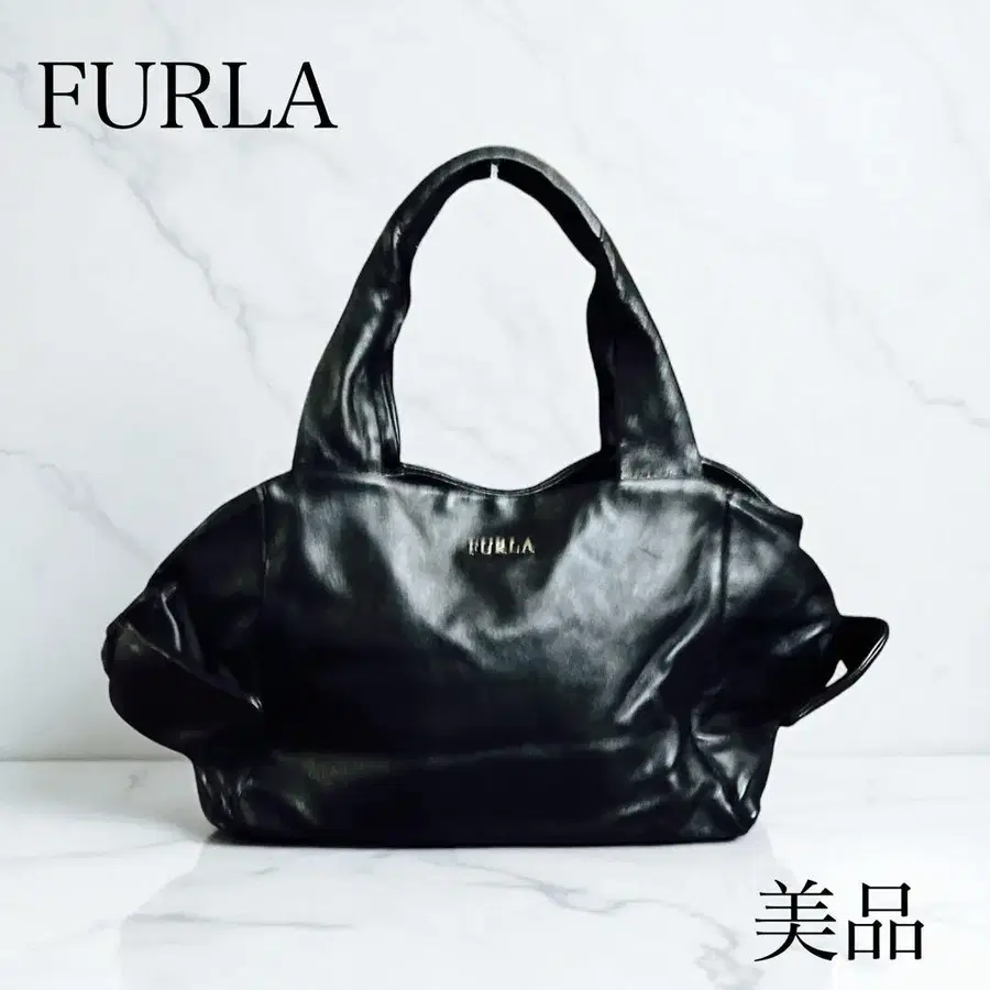 [새상품급] FURLA 훌라 사이드 리본 핸드백 블랙 가죽 도트 무늬