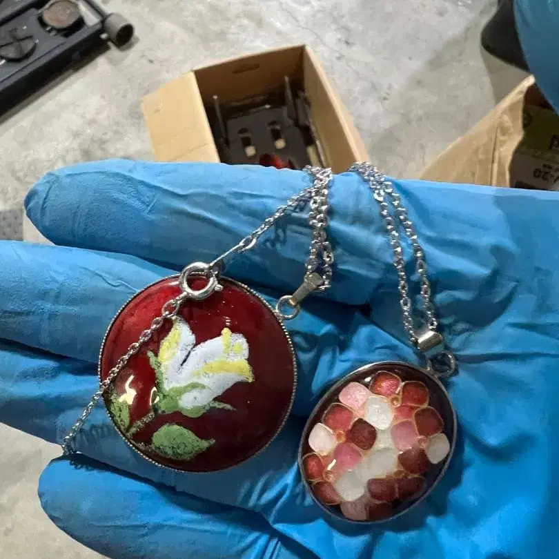 SILVER 각인 체인 포함 칠보 세공풍 펜던트 목걸이 2점