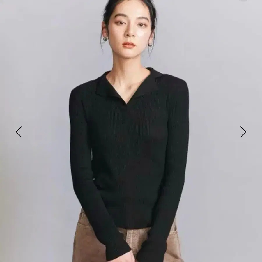 BEAUTY&YOUTH 코튼 리브 오픈 카라 니트 워셔블