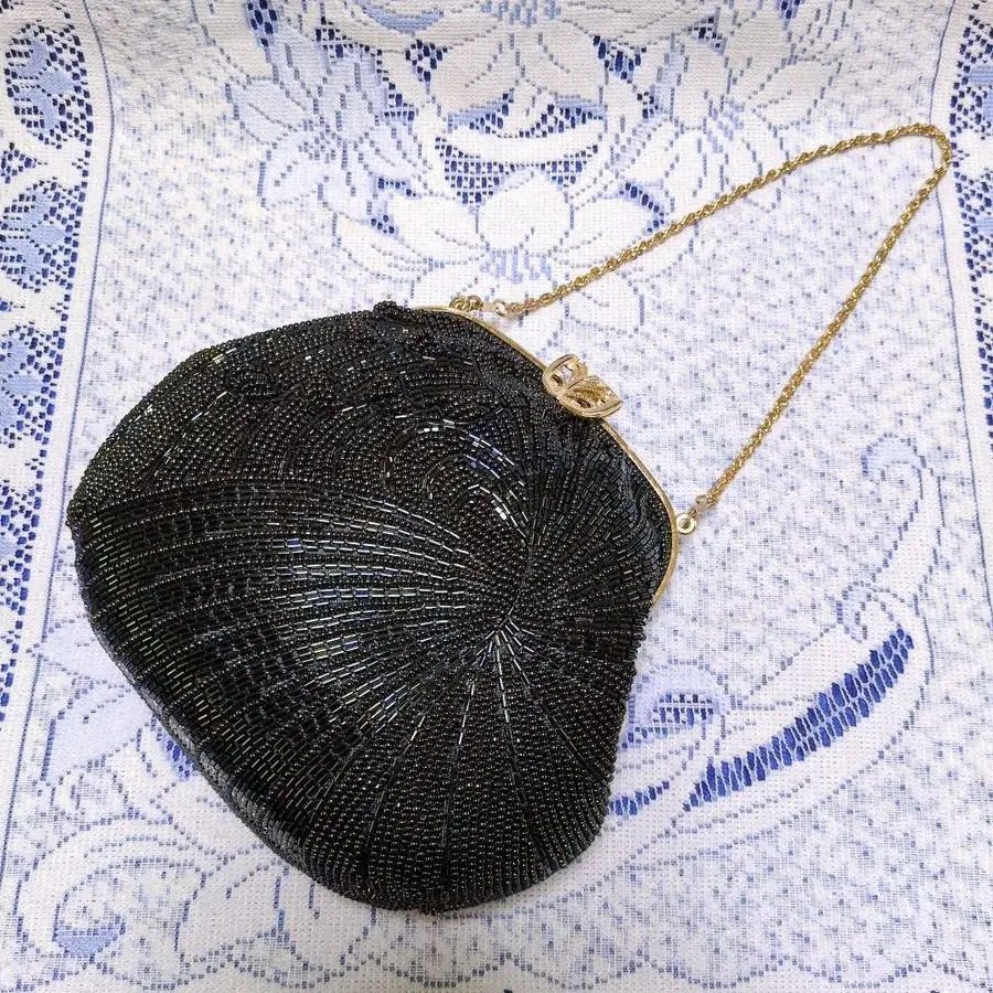 [ 파티 백 ] 다크 그린 전체가 럭셔리한 비즈로 통통한 원형입니다