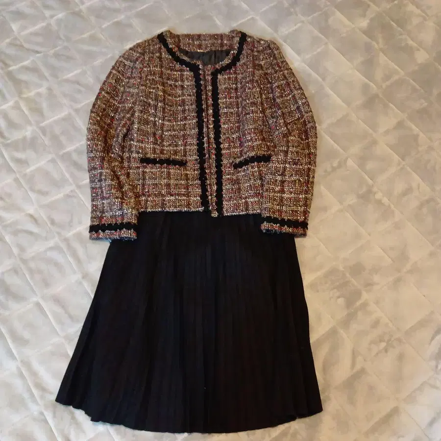 트위드 자켓과 플리츠 스커트 세트 (별도 판매도 대응)