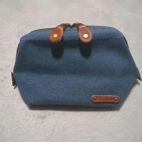 [미사용 새상품] 와이어 파우치 캔버스 메이크업 파우치 블루