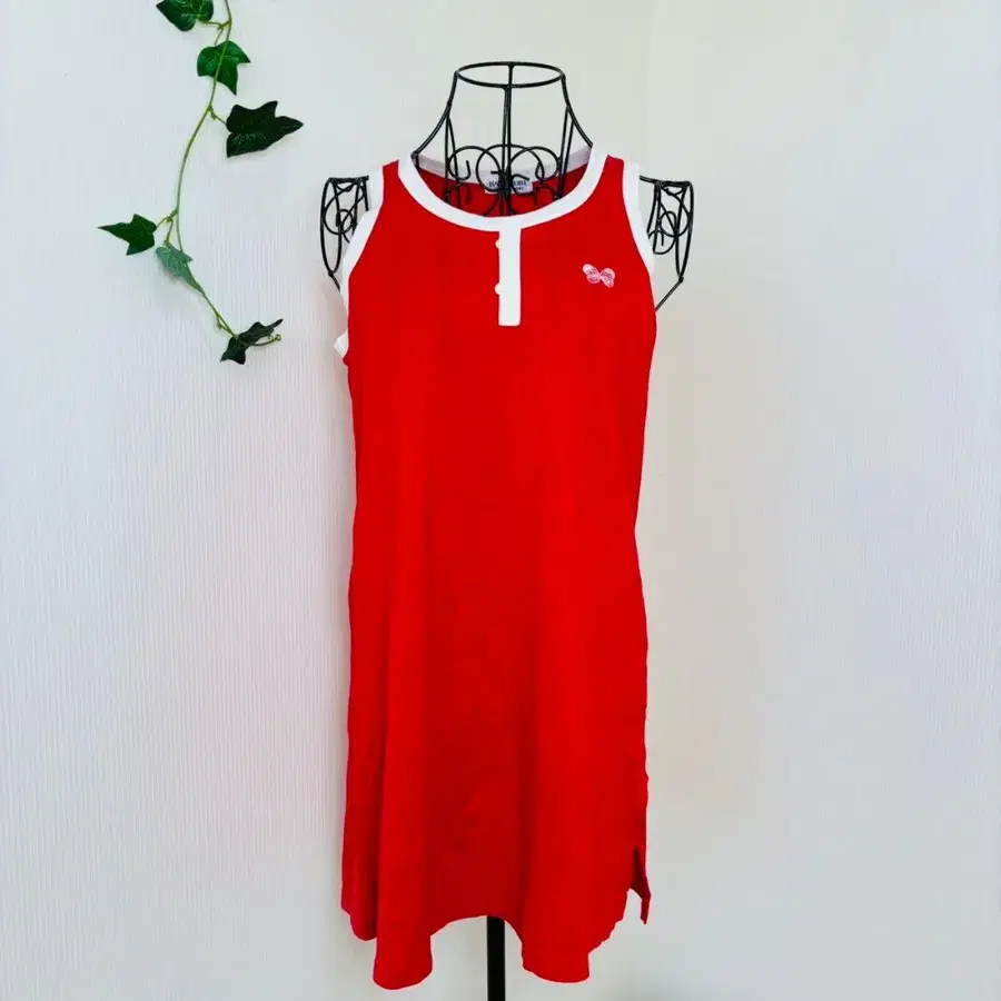 하나에모리 슬리브리스 미니 원피스 자수 레드