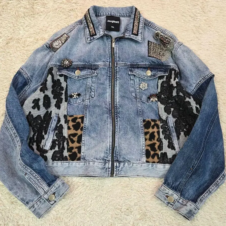 새상품급 Desigual (데시구알) 패치 데님 트래커 자켓 XXL