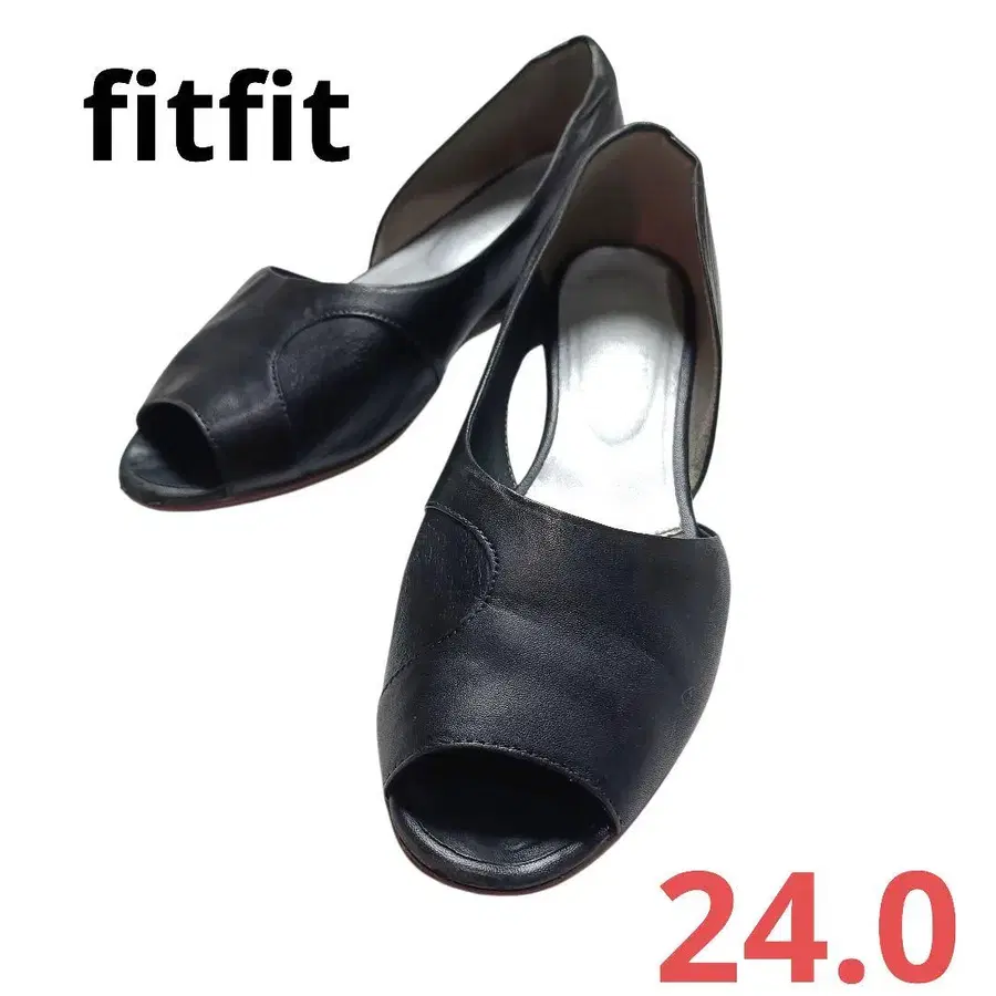 핏핏 오픈토 펌프스 블랙 외반모지 대책 가죽 심플