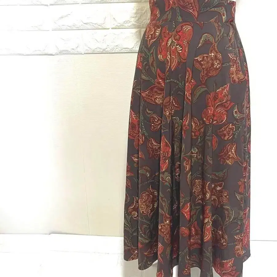멋진 올 패턴으로, 색감이 차분하여 화려하지 않고, 이 스커트로 코디네이트도 세련되게 변신할 수 있습니다. 허리 부분이 앞쪽은 높고 뒤쪽은 약간 낮아 허리 라인이 스타일리시하게 보이는 디자인입니다. 부드러운 소재입니다.