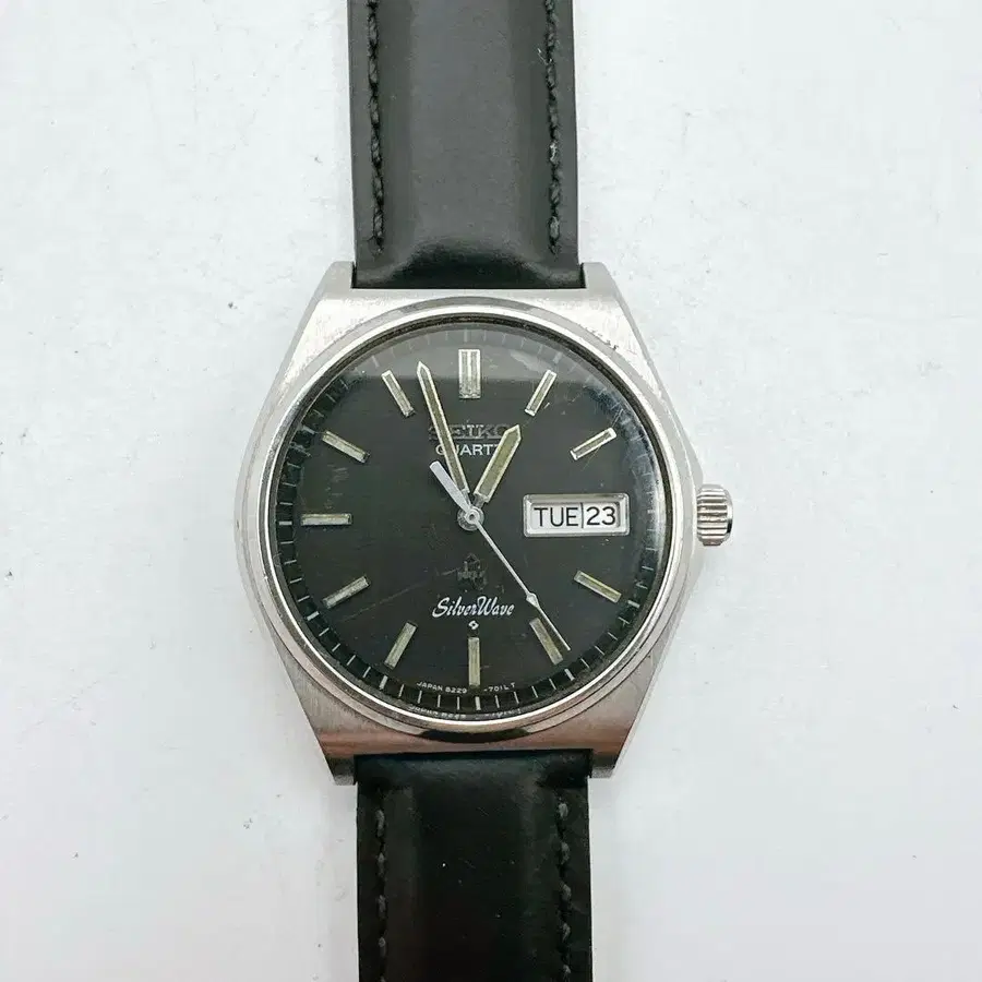 빈티지 가동품 세이코 실버 웨이브 남성용 손목시계 블랙 다이얼 레어