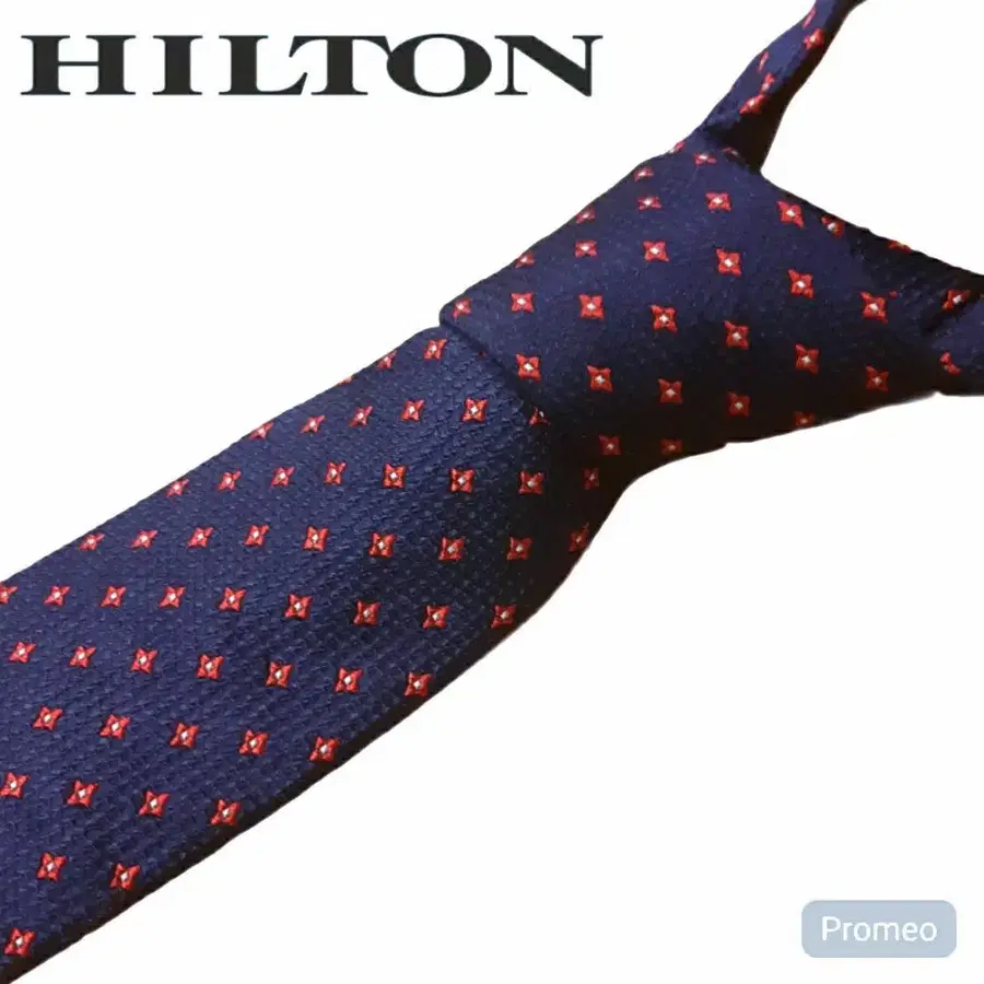 새상품급 HILTON 힐튼 네이비 실크 넥타이 일본제 두께감 있음
