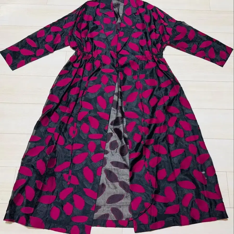 개성파 패턴 롱 가운 코트 겉옷 블랙 x 핑크