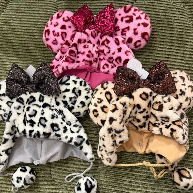 새상품 미니 팬캡 레오파드 무늬 3색 세트 복슬복슬 헤이세이 레트로