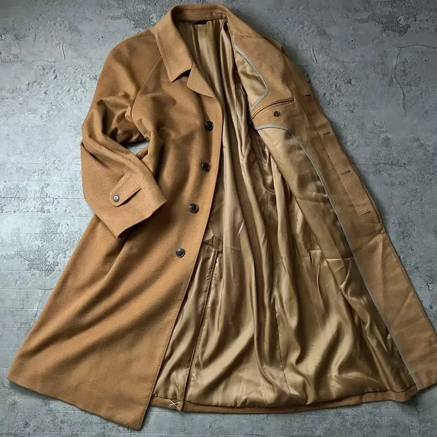 • 캐시미어 100 체스터 코트 더블 카멜 롱 남성용 빈티지