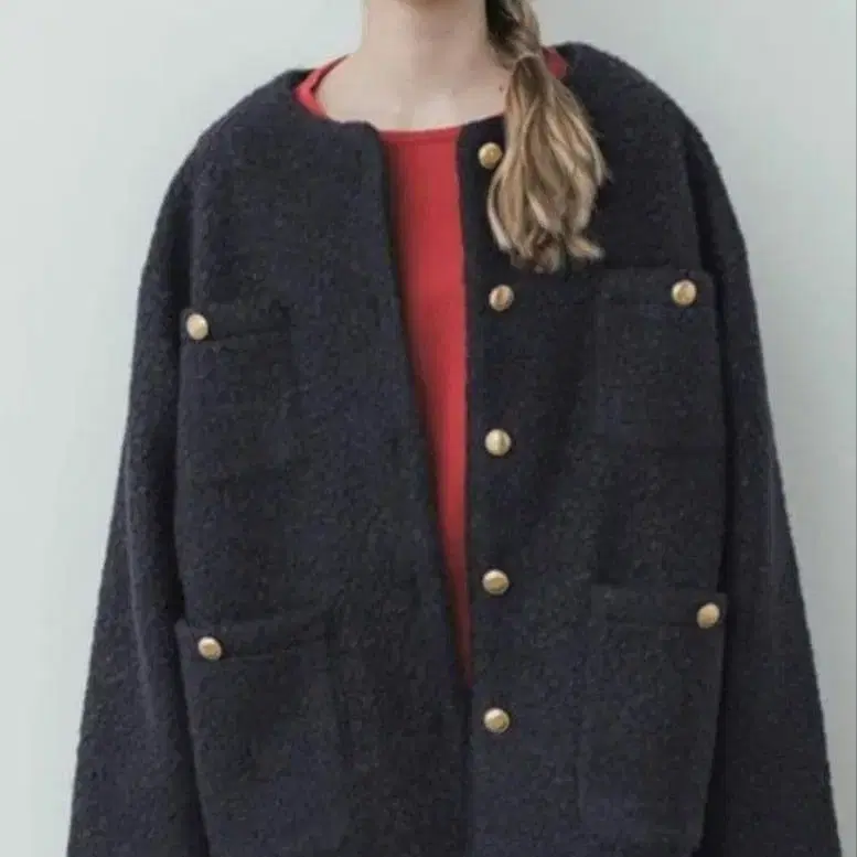 미사용 새상품 coca 푸들 보아 노카라 코트 네이비 M