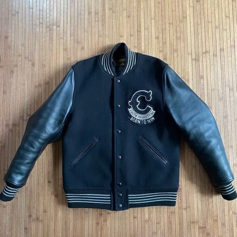 COOTIE 바시티 자켓 쿠티 [ Black x Black ] 소매 가죽