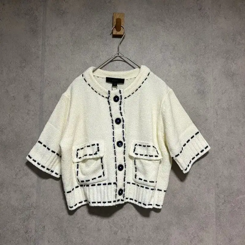 스티치 숏 슬리브 니트 자켓