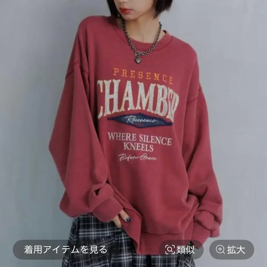 PAGEBOY 칼리지 크라프트 맨투맨 라즈베리