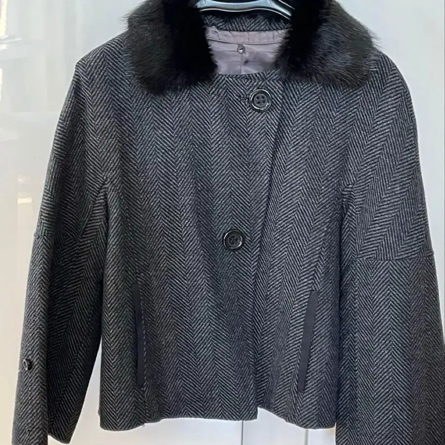 보르지 퍼 카라 부착 울 캐시미어 숏코트