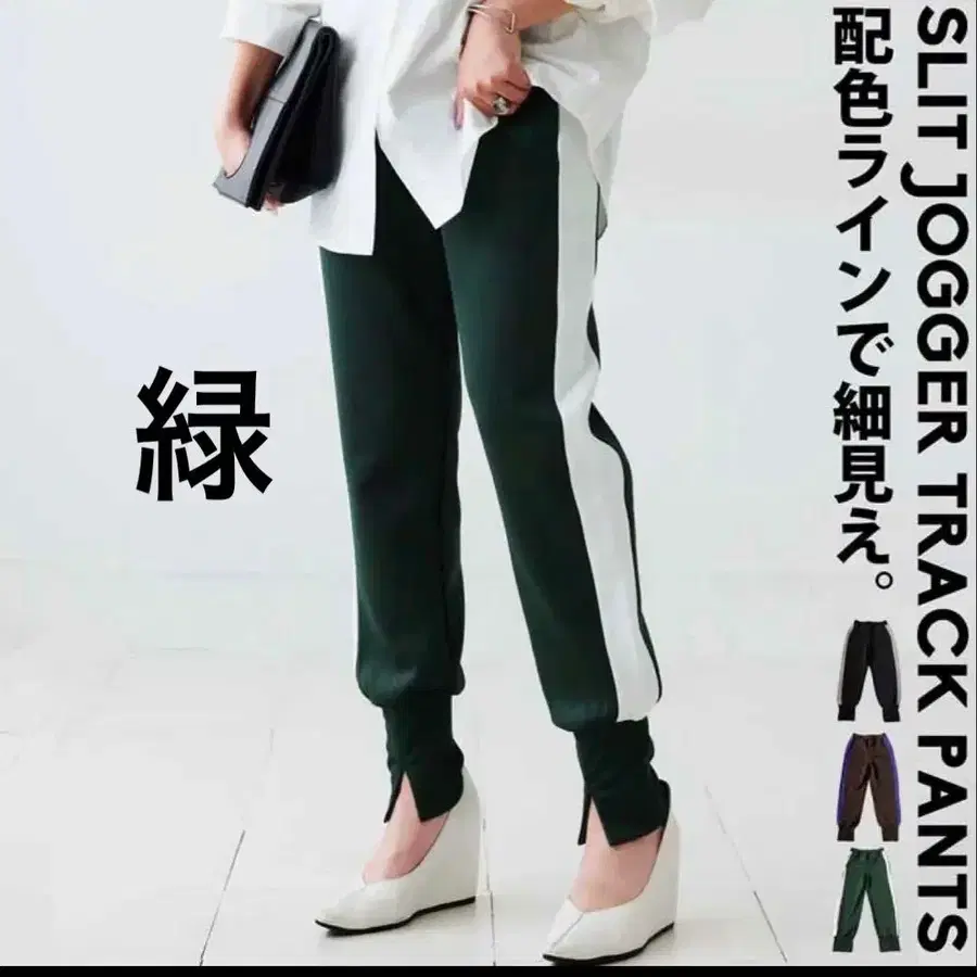 안티카 슬릿 조거 팬츠 롱 바지 리브 팬츠 포켓 그린