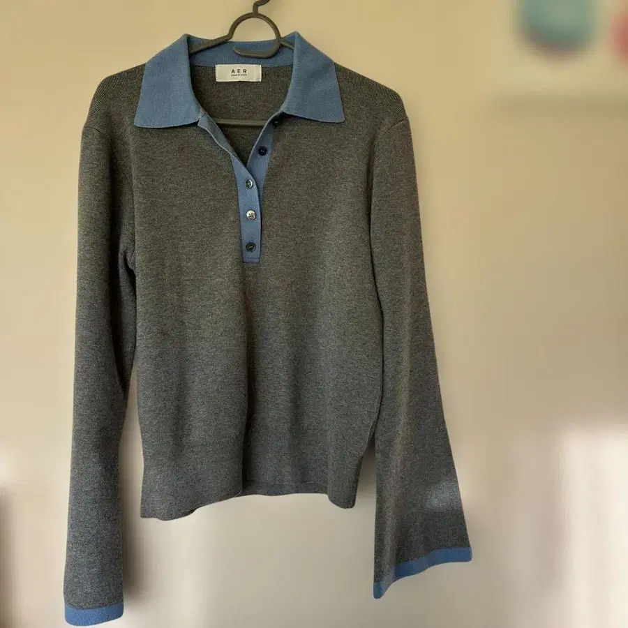 바이컬러가 매력적인 폴로 니트 풀오버.