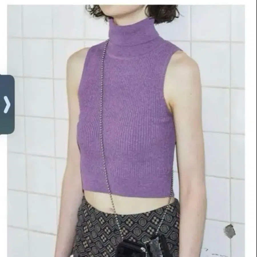 juemi 터틀넥 슬리브리스 니트 퍼플