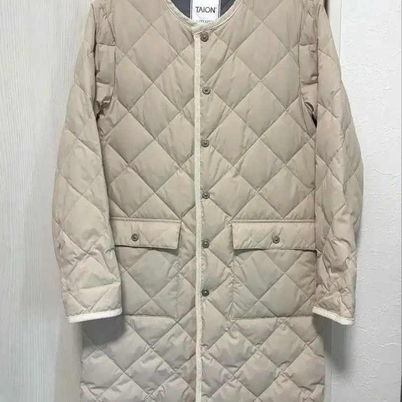 가볍고 따뜻한 [TAION]의 퀼팅 코트. SHIPSany에서만 구할 수 있는 컬러 별주 아이템! TAION의 인기 퀼팅 코트를 SHIPSany에서 컬러 별주했습니다. 베이지 색상은 파이핑 컬러를 아이보리로 변경했습니다. 세부 사항까지 신경 쓴 특별한 아이템입니다. 사이드에는 버튼으로 열고 닫을 수 있는 슬릿이 있어 스타일링에 맞춰 조절할 수 있습니다. 집에서 손세탁이 가능하여 데일리로 사용하기 좋은 것도 기쁜 포인트입니다! 너무 길지 않은 기장감이라 팬츠는 물론, 롱 스커트와 함께 코디하는 것도 추천합니다! 노카라 디자인이라 하이넥이나 터틀넥 상의와도 궁합이 좋습니다.