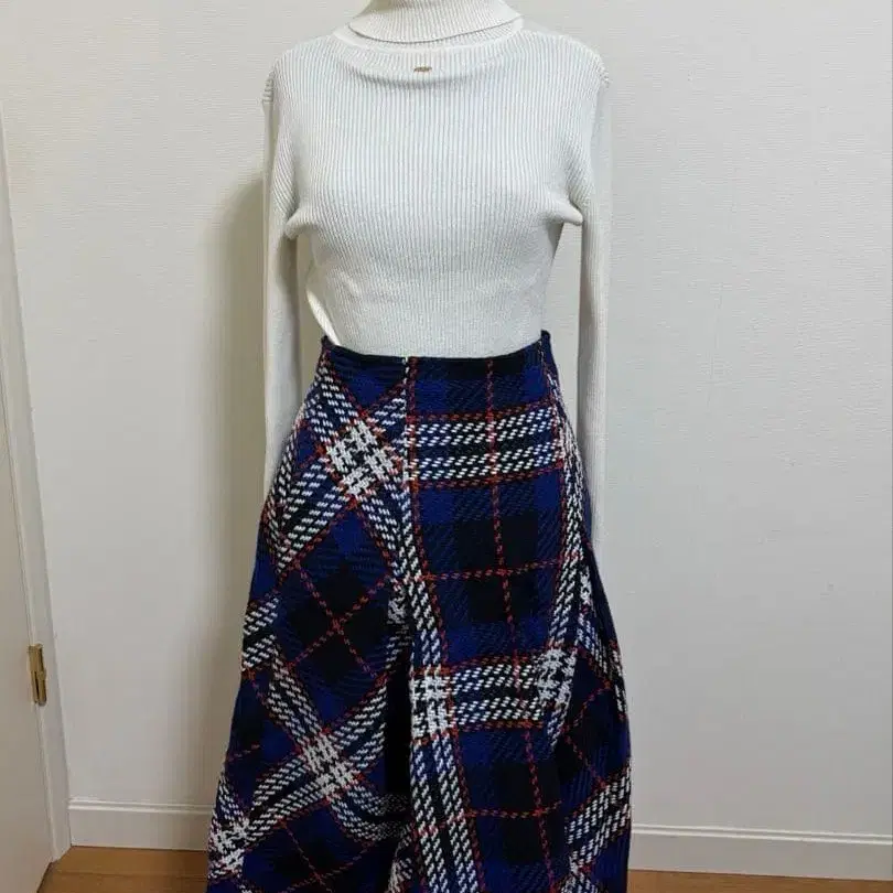 플레어 스커트 청흑적백 체크 무늬 73cm