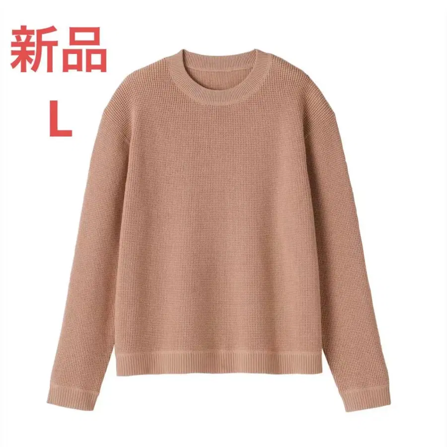 MUJI 세탁 가능한 와플 편직 크루넥 스웨터 여성 L 핑크