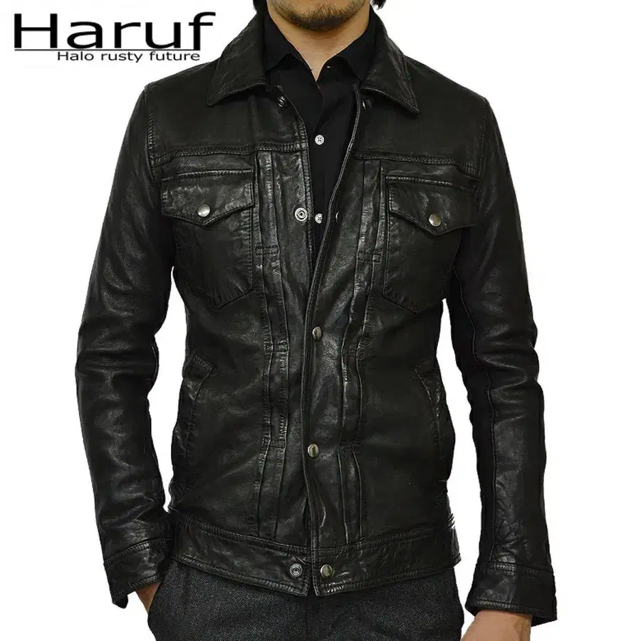 인기 상품 천연 가죽 새상품 데님 자켓 g 가죽 자켓 남성용 블랙