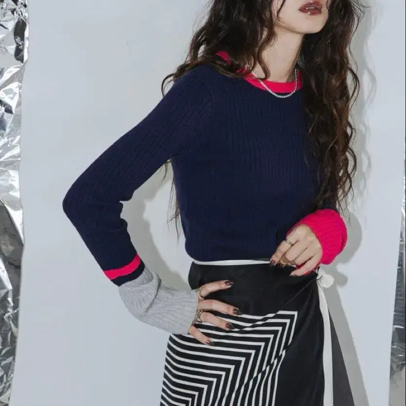 bohmal 플레어 소매 배색 풀오버 니트 바이컬러