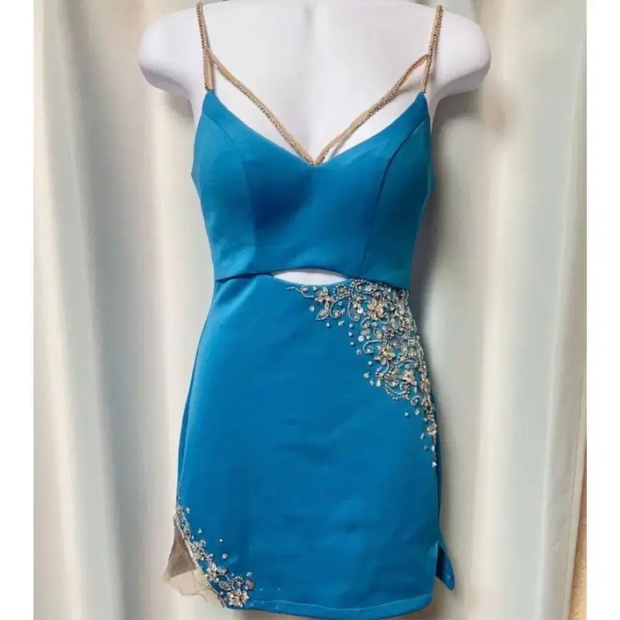 미니 기장 엔젤알 비즈 자수 파랑 컷 아웃 드레스