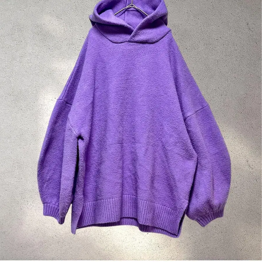 패턴 토르소 니트 후디 후드티 오버 사이즈 루즈 와이드