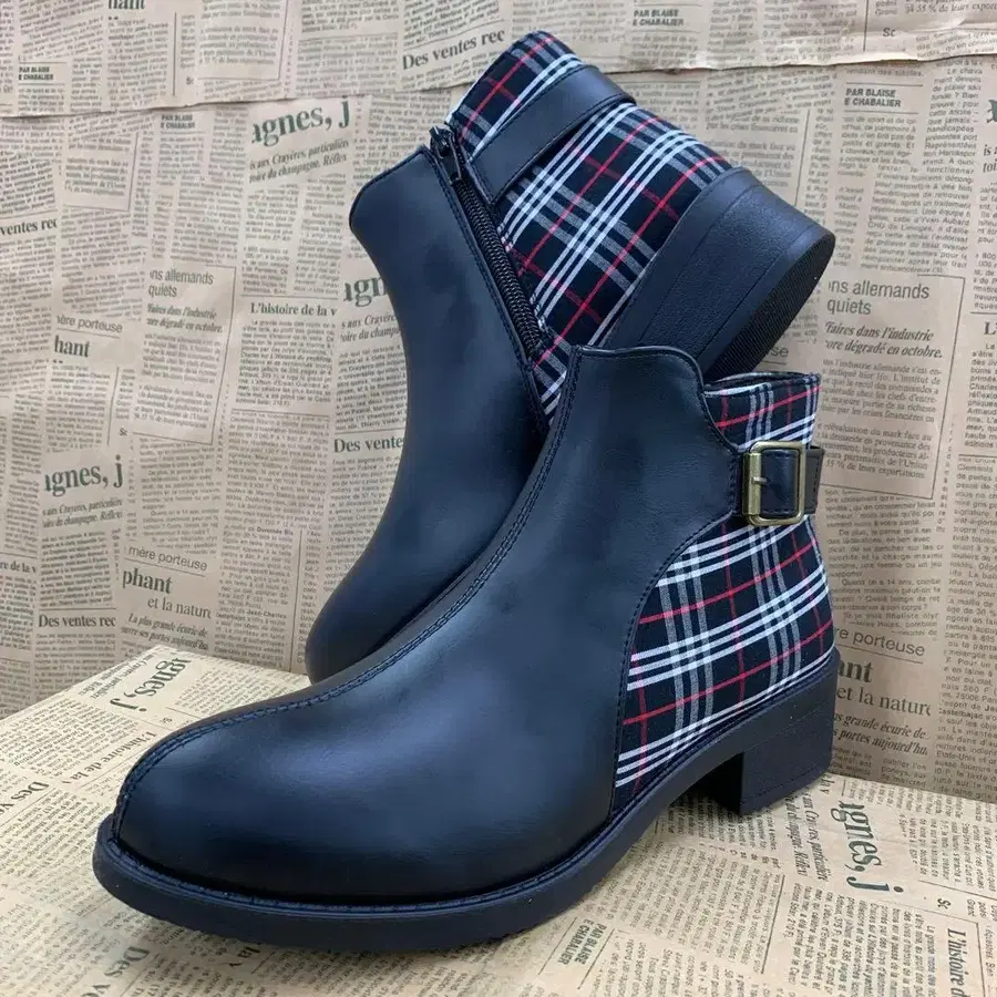 새상품 여성용 M 사이즈 발수 격자 무늬 경량 숏부츠 블랙 9862