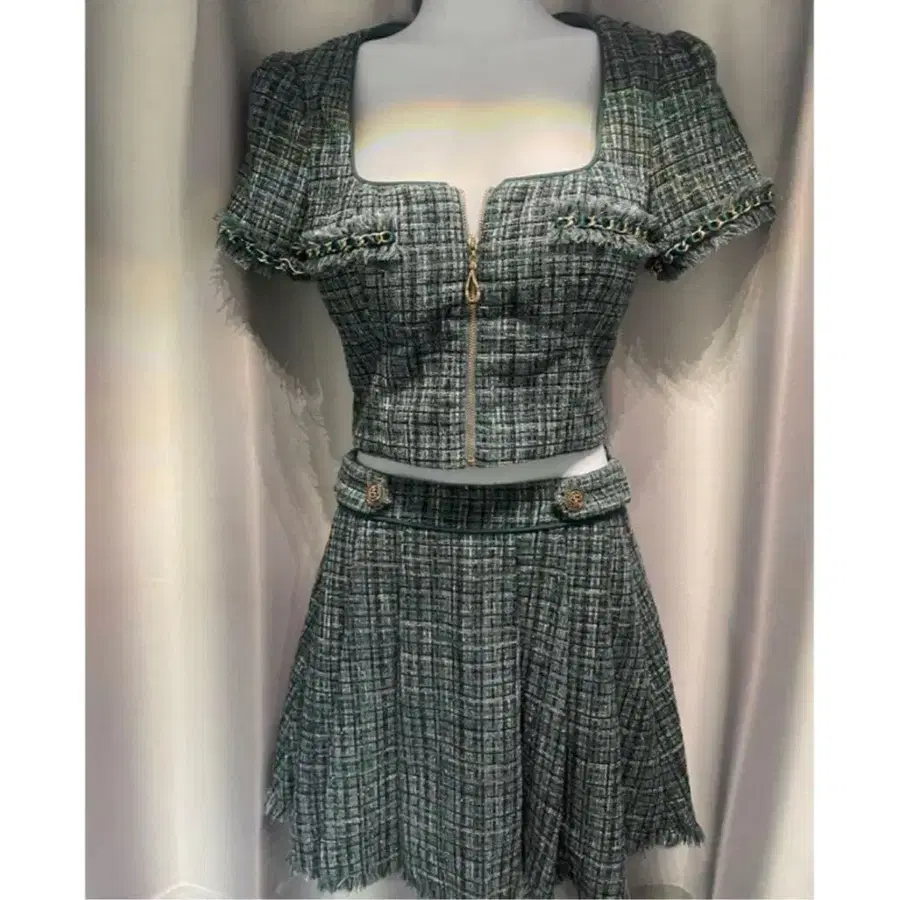 그린 그레이 트위드 드레스
