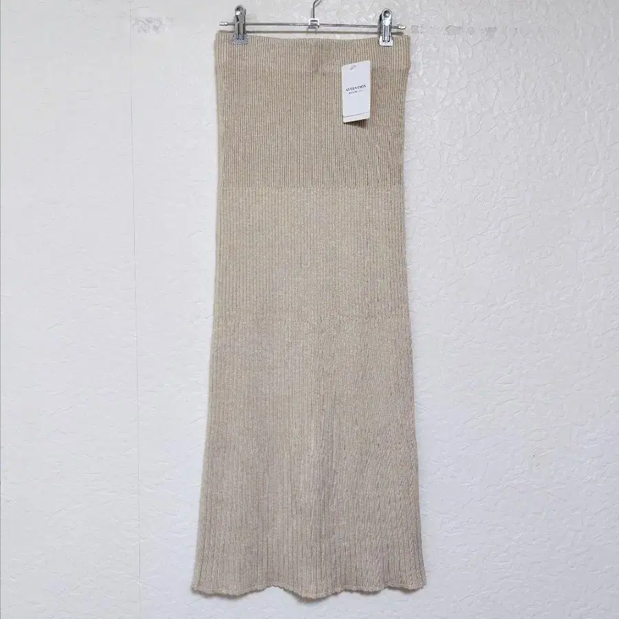 브랜드는 노블의 타이트 스커트입니다. 스트레치 전체 밴딩 풀온. 롱 기장부터 맥시 길이. 슬림한 내로우 실루엣. 랜덤한 리브 니트 스트라이프. 아이보리나 미색 화이트 같은 베이지. 프레임워크 Framework나 Spick and Span 스픽앤스팬, 골지 니트도 판매 중입니다. 2024 aw. 계절은 가을/겨울/봄 정도. 사이즈는 프리 사이즈입니다.