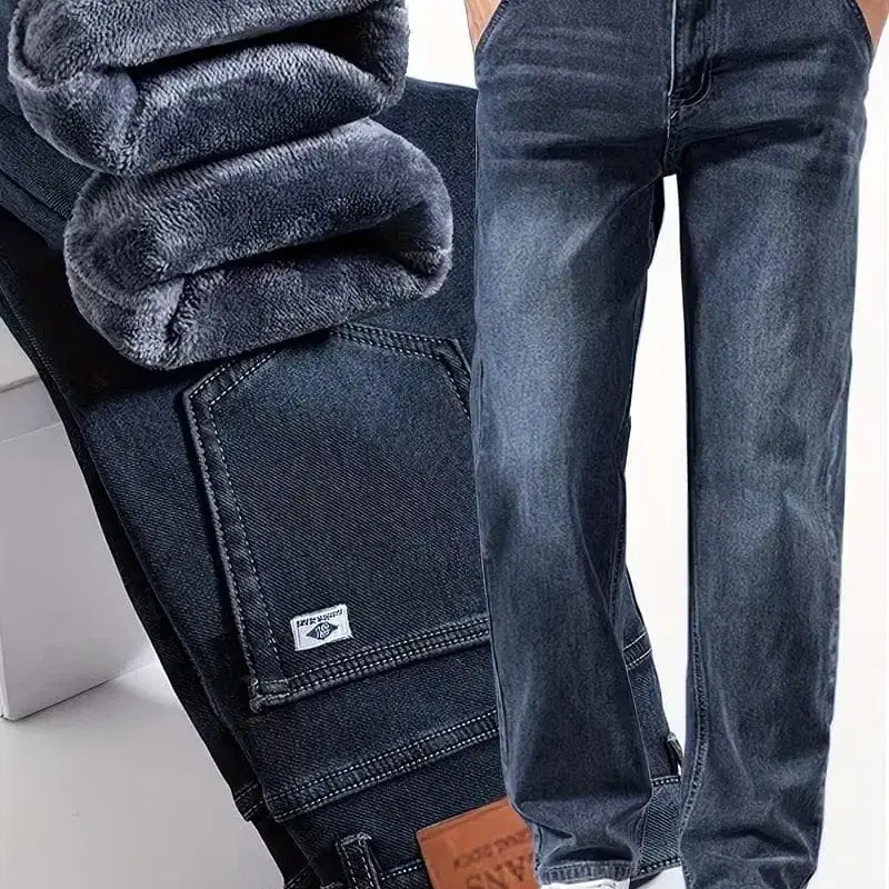 다크 블루 플리스 안감 데님 (남성용 겨울용 따뜻한 팬츠)
