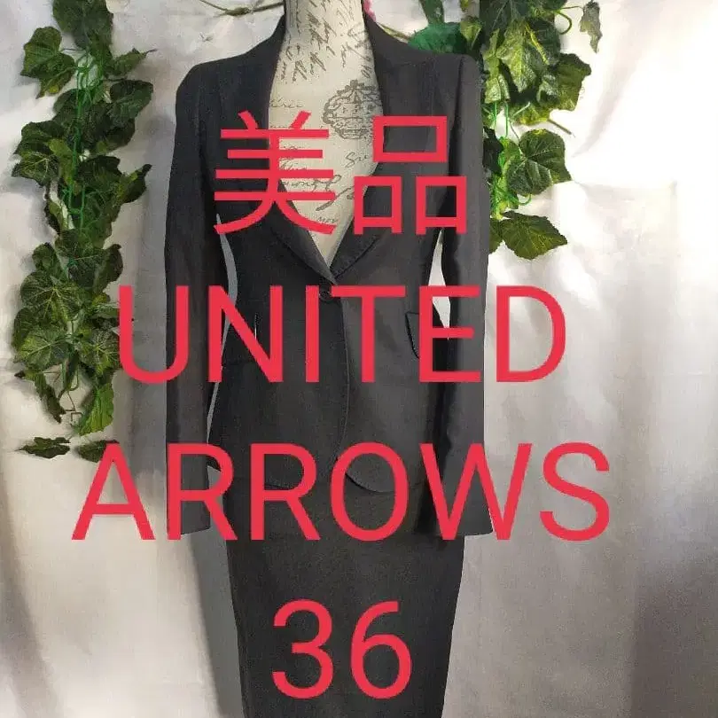 ※ 브랜드 소개 이번에는 *유나이티드 애로우즈의 아이템을 소개합니다. ★ 사이즈 36 ( S ) *상의, 하의 모두 36 ★ 실측치수 *자켓 기장 약 55cm 가슴 너비 (평평하게 놓음) 약 41cm 어깨 너비 약 36cm 소매 길이 약 58cm 뒷면 센터 벤츠 트임 약 13cm *스커트 허리 약 67cm (로우웨스트) 기장 약 54cm 힙 약 86cm 뒷면 센터 슬릿 트임 약 17cm ★ 품질 울 62% 실크 38% 안감 몸통 큐프라 60% 폴리에스테르 40% 소매 큐프라 100% 전체 안감 사양 *사계절용 ★ 색상 블랙 *상태 5 1. 택 포함 새상품 2. 택없는 새상품 3. 새상품급 4. 컨디션 최상 (새상품급은 아니지만 매우 깨끗한 상태) 5. 미사용감 (약간의 사용감은 있지만 깨끗한 상태) 6. 사용감 있음 (사용감은 있지만 데미지 없이 보통으로 착용 가능한 상태) 7. 하자 있음 (작은 하자가 있음) 큰 데미지가 있는 것은 판매하지 않습니다. *소재 실크 울 트윌 약간 얇은 소재의 부드럽고 유연한 질감의 실크 믹스 울 트윌 소재. *소재 두께 4 1. 두꺼운 원단 2. 약간 두꺼움 3. 중간 두께 4. 약간 얇음 5. 얇은 소재 *실루엣 1 1. 슬림 2. 약간 슬림 3. 보통 4. 약간 여유 있음 5. 여유 있음 *기타 *자켓 AMF (핸드 스티치풍) 스티치 장식, 어깨 패드 내장, 원 버튼 피크 라펠 자켓. *스커트 무릎 기장 타이트 스커트 *실크 울 고급 소재의 블랙 수트입니다.