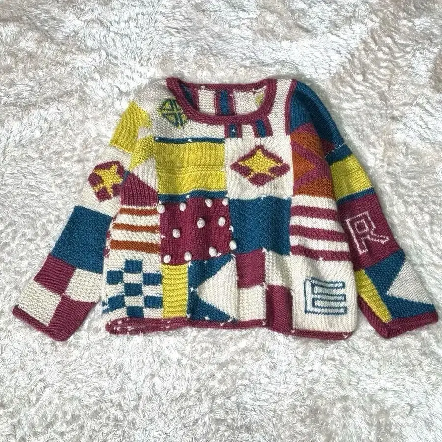 멀티 컬러 핸드 니트 1점 로우 게이지 자카드 케이블 스웨터