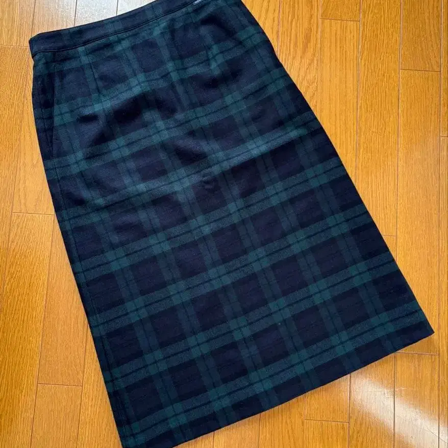 NON NO 체크 무늬 타이트 스커트 다크 그린